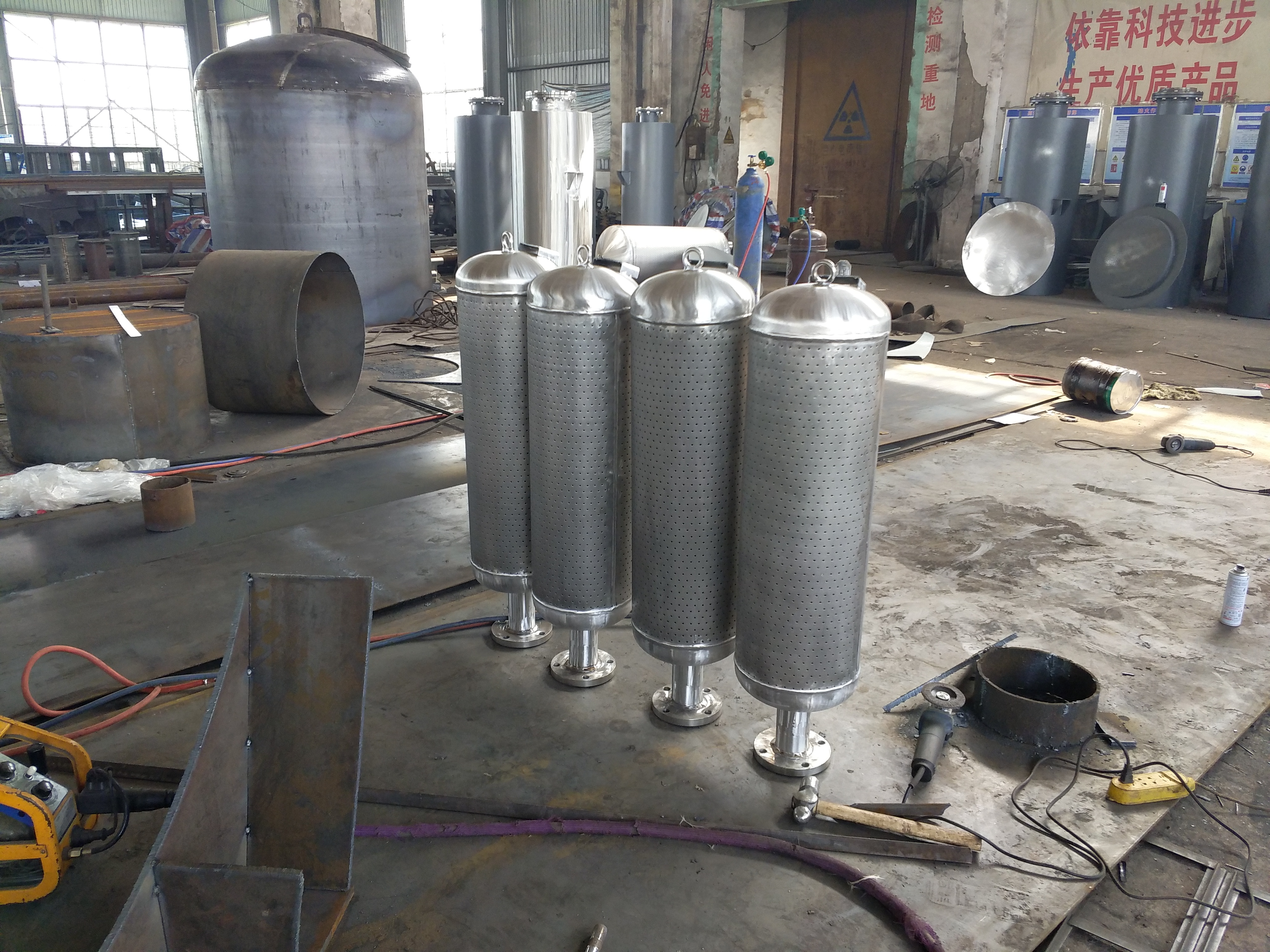 小孔喷注消声器,声学壳体我公司-荐遥遥不锈钢制造,连接管根据设备蒸汽工况来确定。-用的三种接管材质为20#碳素钢,304(0Cr18Ni9)、321(1Cr18Ni9Ti\0Cr18Ni10Ti)不锈钢以及适用于高温高压的合金钢管。