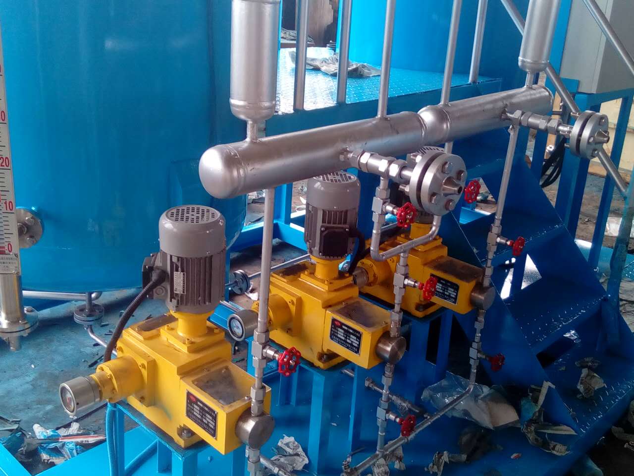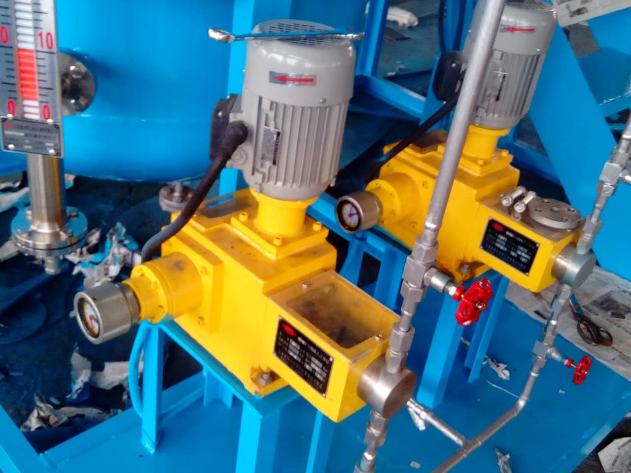 1、油田磷酸盐加药装置。主要用于在石油开采-向平台上的井口和及其他系统注入絮凝剂、阻垢剂、缓蚀剂、破乳剂等各种药液。